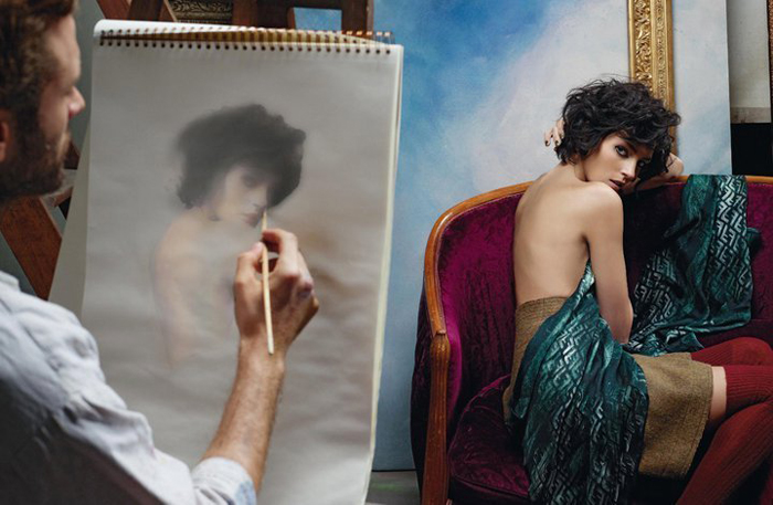 Fendi 2011秋冬廣告大片正式出爐,延續著品牌廣告一向由老佛爺Karl Lagerfeld掌鏡的傳統,超模Anja Rubik仿佛人體模特置身于畫室中,優雅又散發著魅惑性感的味道,整體畫面充滿了油畫版的美感。