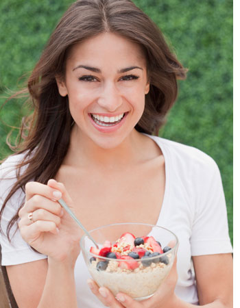 ??? 肌膚處方:吃一點點脂肪。“至少有20%的熱量要取自脂肪,主要是不飽和脂肪,”紐約市皮膚科專家Cheryl Karcher醫(yī)學(xué)博士說。使用橄欖油煎炒蔬菜,再撒上一些堅果,制作成美味的沙拉,并且要堅持食用富含omega-3脂肪酸的鮭魚,亞麻籽,還要偶爾給自己加個雞蛋。植物油中所含的亞油酸,對皮膚屏障起到至關(guān)重要的作用,在保證肌膚水潤的同時,縮減肌膚對外界的刺激性