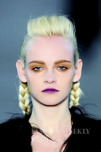 額前的發髻高聳,頗有強勢的貴族風范,耳后的兩個辮子被輕輕地綁在一起,平添了一分少女的俏皮感。