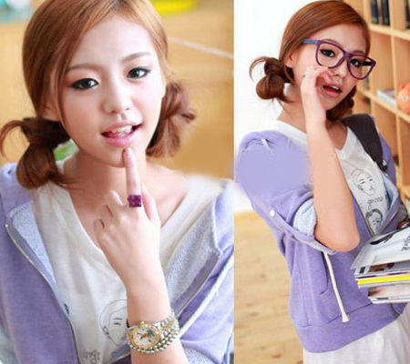 用丸子發(fā)團兒來扮俏,是從初中到大二的女生都很喜歡的春夏清純發(fā)型。選擇具有光澤度和層次感的焦糖色或深棕色染發(fā),這種不會太耀眼但又能 提亮膚色的染發(fā)色,配合微翹的劉海和可愛對稱小發(fā)團,讓發(fā)型更時尚而又不會太夸張。