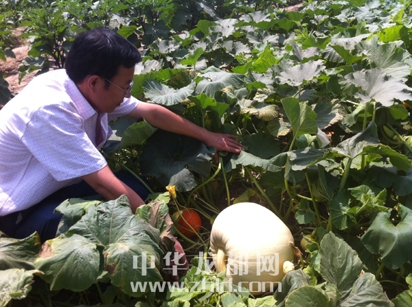 川匯區蔬菜研究所副所長康俊君蹲下身子撥開綠綠的葉子,指著已長成的太空南瓜(如圖二)說:“現在這個太空南瓜有十多斤重了,這些南瓜最大可長到幾十斤甚至百斤。”
