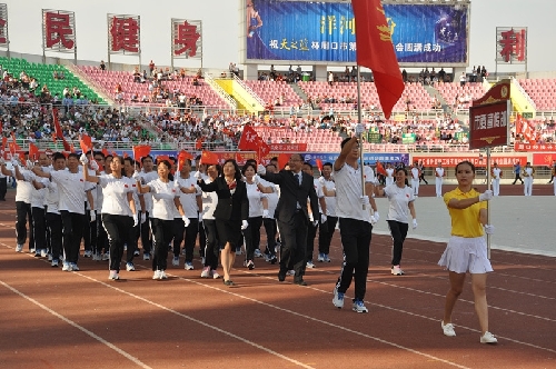 ????當日16時,國旗方陣、會旗方陣、彩旗隊、裁判員、運動員依次入場,一個個意氣風發的團隊引來現場觀眾陣陣掌聲和歡呼聲:周口川匯區代表團首先入場,他們步伐矯健,英姿勃發;市委辦公室代表團精神抖擻,意氣風發;市委宣傳部代表團邁著矯健的步伐走向主席臺……