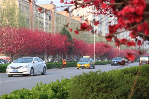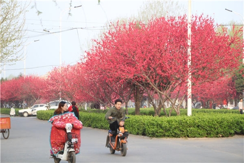 “不必費勁周折跑到鄉間土路看桃花,我們這里的桃樹是專門的景觀桃。相比普通桃樹,景觀桃花瓣更多、更嬌艷,而且花期也相對較長。”對桃樹頗有研究的賈海新說,只是建設大道西段處于周口城區西北角,靠近郊區,這里盛開的桃花鮮有人知道而已。