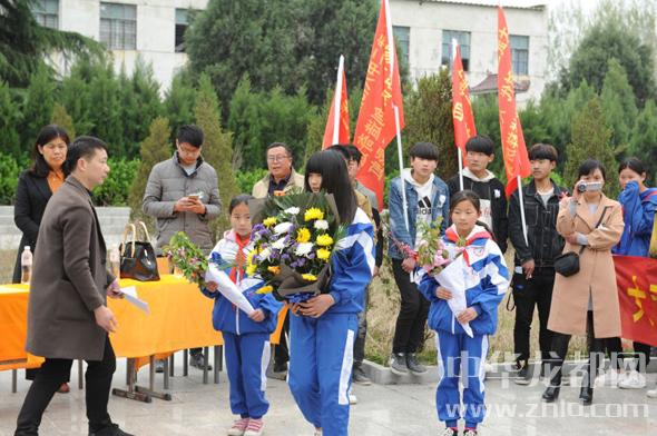 隨后,學生代表向烈士敬獻花籃,全體人員給烈士紀念碑敬獻了小白花,并鞠躬默哀,以此寄托對革命先烈的深深敬意和無限哀思。之后,少先隊員們在老師的帶領下,重溫了入隊誓詞。