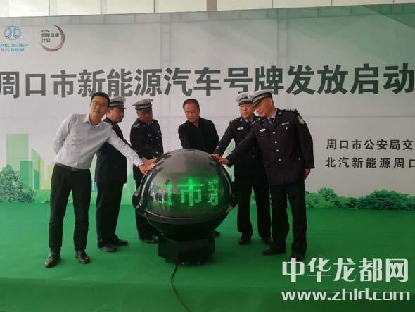 中華龍都網訊(周口報業全媒體記者 姬慧洋 陳永團 文/圖)4月10日上午10時,在市區太清路與昆侖路交叉口附近,我市新能源汽車號牌發放儀式啟動,在啟動儀式上周口市公安局交通管理支隊支隊長謝偉親手將“豫PD08887”這副新能源汽車號牌送到車主張磊的手中。據介紹,為了能夠盡早選到自己心儀的號牌,家住市區漢陽路附近的張磊一大早就趕到了位于建設大道與周口大道交叉口周口幼師北門附近的萬達便民服務站,在現場通過“50選1”的號牌選擇方式,喜獲自己心儀的號牌。