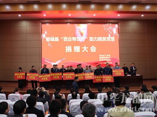中華龍都網(wǎng)訊(周口報業(yè)全媒體記者 徐松 文/圖)4月13日,鄲城縣召開“百企幫百村”助力脫貧攻堅捐贈大會,全縣129家企業(yè)反哺社會助力脫貧攻堅,現(xiàn)場捐贈近1300萬元。鄲城縣四個班子領(lǐng)導、部分縣處級領(lǐng)導干部、縣慈善會會長、縣扶貧協(xié)會會長、縣直各單位和鄉(xiāng)鎮(zhèn)負責人等參加捐贈大會。縣委書記羅文閣發(fā)表講話,縣長李全林主持會議。