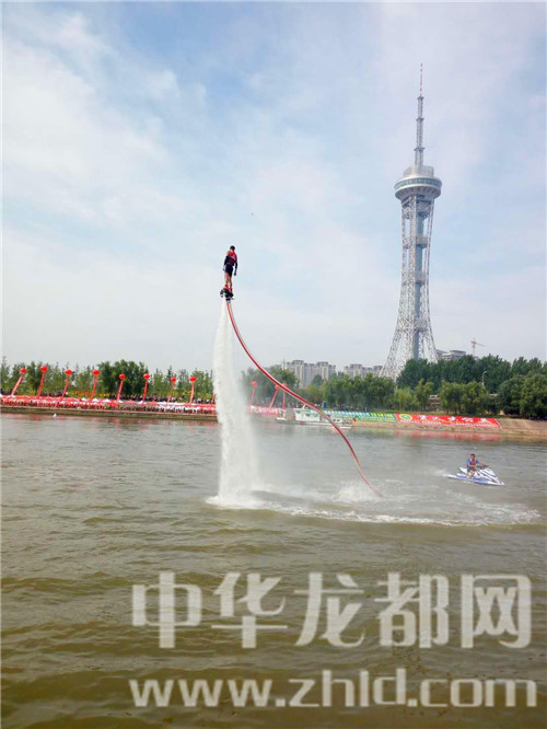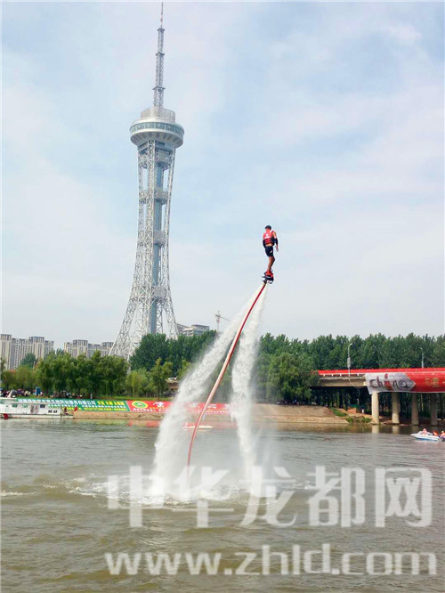 開幕式上,大賽組委會(huì)請(qǐng)來(lái)的“水上飛人“表演令觀眾驚嘆不已,只見一名運(yùn)動(dòng)員腳下踩著特制的噴水裝置,猶如鋼鐵俠一般,從水中騰空而起,時(shí)而在半空中靜止不動(dòng),時(shí)而從空中飛魚入水,連續(xù)做出前后空翻、空中回旋、蛟龍出水等各種華麗特技,令觀眾尖叫雀躍。期間,水上兩艘快速疾飛的船模表演,以及空中翻飛自若的航模表演,都給觀眾帶來(lái)了不一樣的視覺感受。