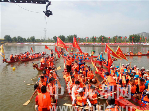 精彩無(wú)比的翎船捕鴨賽后,首先進(jìn)行的是市直組、企業(yè)組200米競(jìng)速賽的預(yù)選賽。隨著發(fā)令槍響,各參賽隊(duì)伍迅速搖動(dòng)船槳,爭(zhēng)先恐后地向前劃行。在兩岸觀眾一浪高過一浪的吶喊助威聲中,參賽隊(duì)頑強(qiáng)拼搏,競(jìng)相沙潁河上飛渡,不僅點(diǎn)燃了市民傳承龍舟文化的熱情,也點(diǎn)燃了周口人民的競(jìng)進(jìn)激情。
