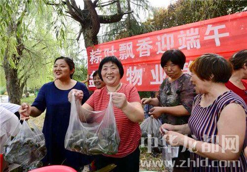 在一片歡聲笑語中,包好的400多個粽子被分發給小區的老人,為他們送去一份節日的問候。