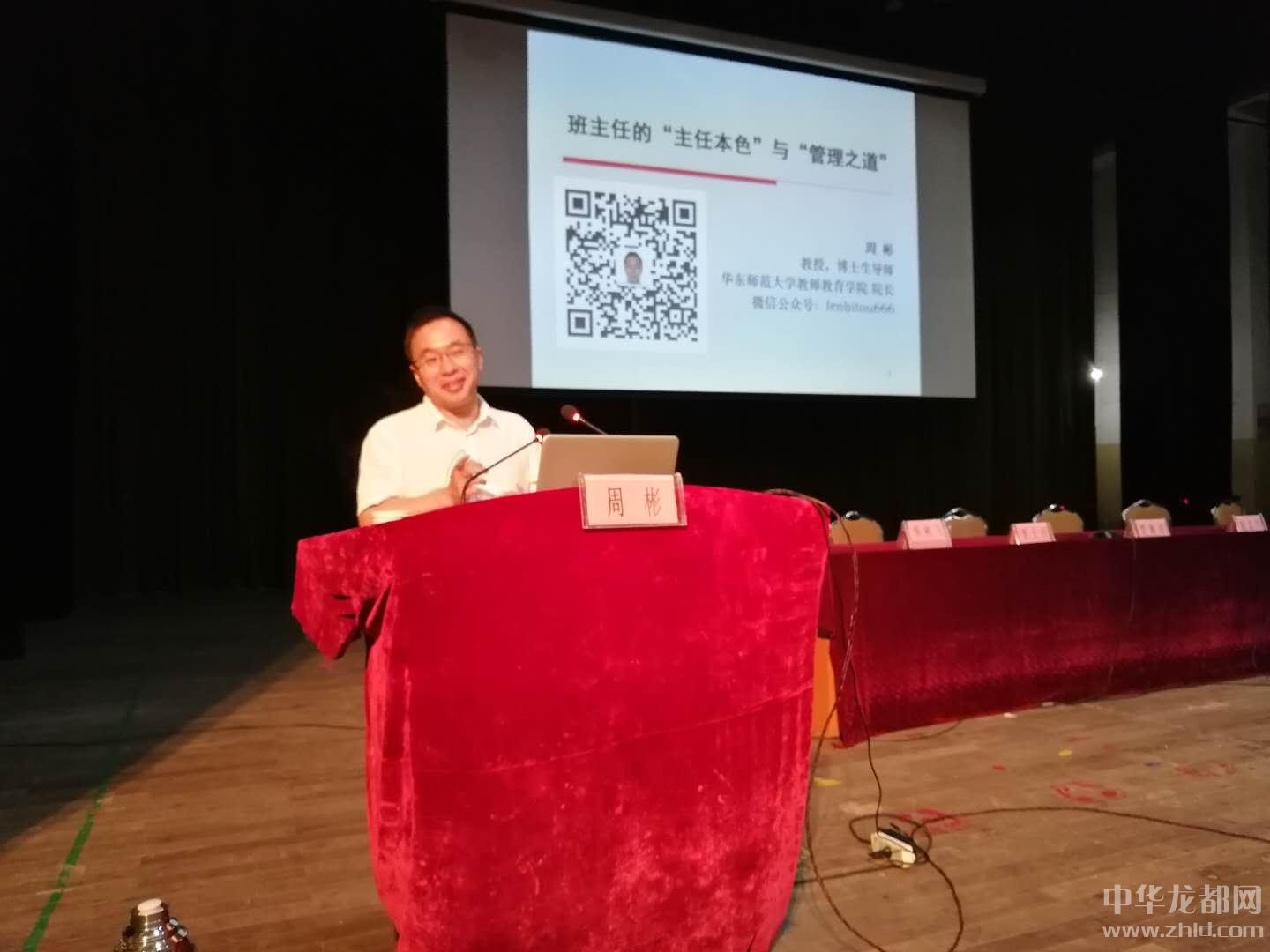 上午,簡短的開班儀式后,華東師范大學(xué)教師教育學(xué)院院長、教育學(xué)博士周彬圍繞班主任的“主任本色”與“管理之道”開講,他結(jié)合自身工作實(shí)踐經(jīng)驗(yàn)詳細(xì)闡述了班主任要處理的四種關(guān)系,即:班主任與老師的關(guān)系、班主任與學(xué)生的關(guān)系、班主任與學(xué)生家長的關(guān)系和班主任與班委的關(guān)系。他詼諧語言、淵博的學(xué)識贏得了參訓(xùn)人員的陣陣掌聲。