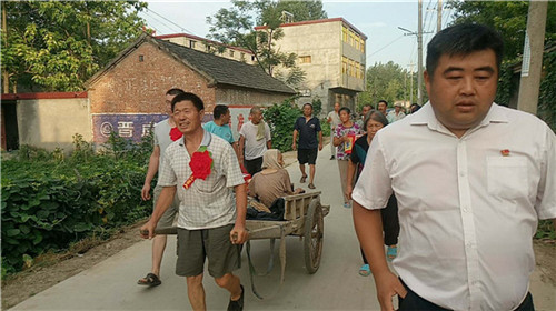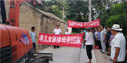 當日早上,秋渠鄉高小橋行政村牛橋和孫大莊自然村,鄉村干部打著橫幅、孝順兒、媳胸帶紅花,用架子車拉著老人,后面跟著圍觀的村民,通過隆重“接老人回家”活動,激勵更多人孝老愛親。