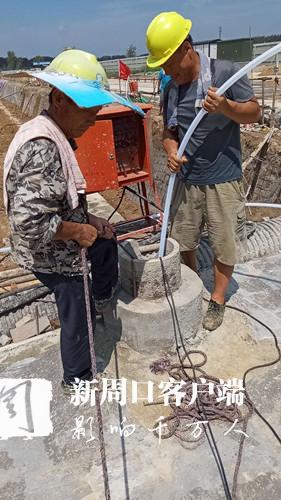 賈魯嘉苑項目L地塊施工現場,建筑工人正在對降水井進行抽水
