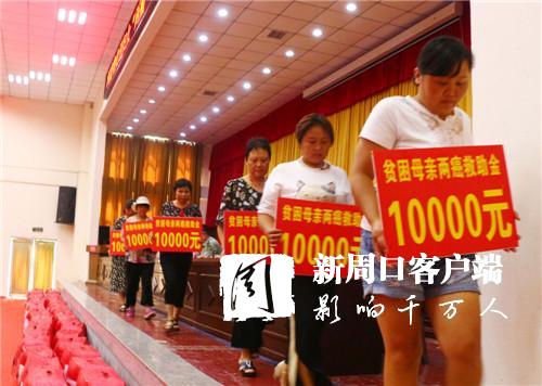 來自唐集鄉王莊村的吳鳳芝拿到一萬元救助金后激動不已,連稱:“謝謝黨委、政府,謝謝婦聯對我們的關愛……” 據了解,自河南省婦聯實施“兩癌”貧困婦女救助項目以來, 鹿邑縣婦聯積極組織,通過鄉鎮婦聯對全縣26個鄉鎮的貧困“兩癌”患者進行摸底和檔案審核,并通過中國婦女網為符合條件的“兩癌”貧困婦女申請救助。截止目前,鹿邑縣婦聯共向上申請救助金23萬元,救助23名貧困“兩癌”患者,今天得到救助的6名貧困母親每人將獲得1萬元的資金救助。