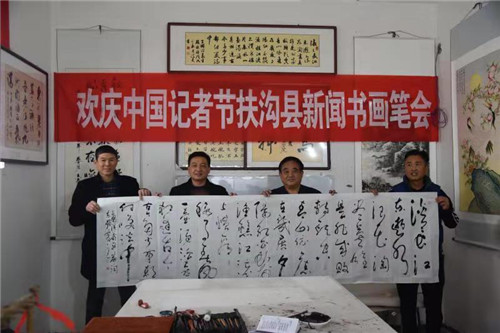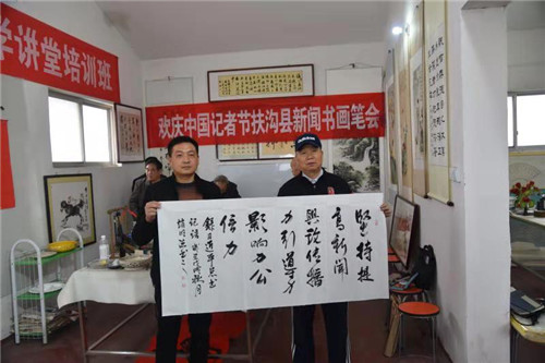 筆墨寫春秋,重彩頌佳節。為慶祝第19個中國記者節,在扶溝縣的張坡詩詞名人書畫館,來自省書法家協會的書法家與當地新聞宣傳部門的書畫愛好者們齊聚一堂,以舉行書畫筆會的形式向新聞媒體人慶賀節日。