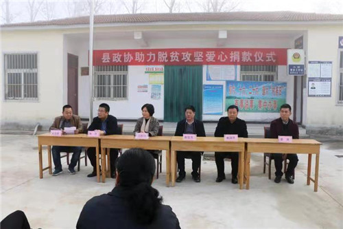 11月13日,在扶溝縣桐丘街道辦事處小胡行政村村委院內,縣政協副主席郝寶杰將市、縣政協委員們捐贈的2萬元錢交到小胡、東五村黨支部書記手中,也將政協委員對脫貧攻堅事業(yè)的愛心傳導到貧困戶的心中。