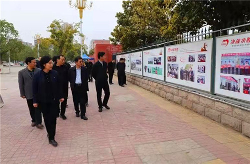 11月14日下午,鄲城縣委書記羅文閣等縣四個班子領導一行到縣世紀廣場共同觀看《決戰決勝---鄲城縣脫貧攻堅工作攝影》展。