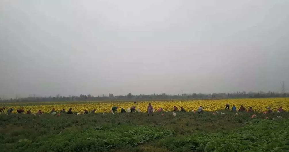 自10月25日進入收獲季節,先后對這片金絲皇菊進行了三次采摘,由于對花形大小有要求,得挑著采,每人每天按40元計算報酬。這次是末茬,需要大小一遍凈,以每斤0.3元結算酬勞。