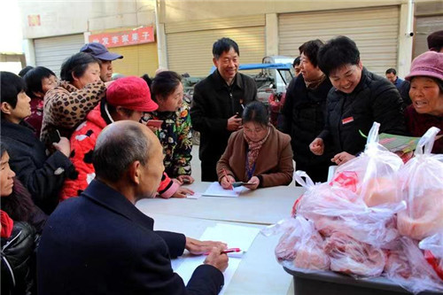 為讓廣大群眾吃上放心肉、質優價廉肉,李會霞請來縣工商局、縣非公黨工委、縣農牧局、縣食藥監局領導親自監督把關,確保豬肉食品安全。為了擴大活動的影響,她發放宣傳資料、掛宣傳條幅,還在縣FM91.8電臺滾動播報活動消息,在微信群傳播活動信息,努力把好事、善事辦好,辦到群眾的心坎上。