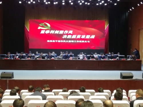縣委書記馬明超出席會議并講話,縣長王毅主持會議,縣委副書記、政法委書記岳新坦宣讀干部作風大整頓督查通報,副縣長王汝凌作迎接貧困縣退出市級初審評估檢查工作動員講話,作風大整頓被通報單位負責人作表態發言。