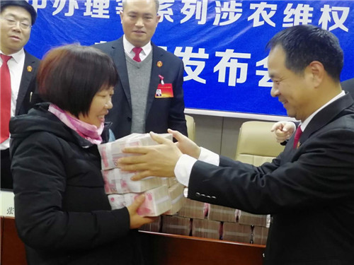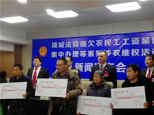 “感謝項城法院的領導,他們一心為民,克服種種困難,幫助我們要回了血汗錢。”12月24日,項城法院拖欠農民工工資案件集中辦理等系列涉農維權活動新聞發布會在該院召開,16名涉農維權案件當事人從項城法院黨組成員、院長張永波的手中接過索要許久的血汗錢,喜極而泣。