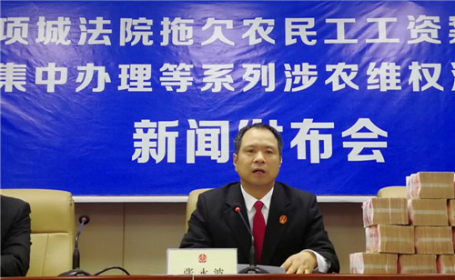 新聞發布會現場,首先就項城法院涉農維權活動的進展及取得的階段性成果等方面,向與會人員進行了通報和說明。據統計,經過全院執行干警共同奮戰,截至目前,全院共受理涉農案件73件,審結69件,標的310多萬元;執結35件,標的200多萬元。