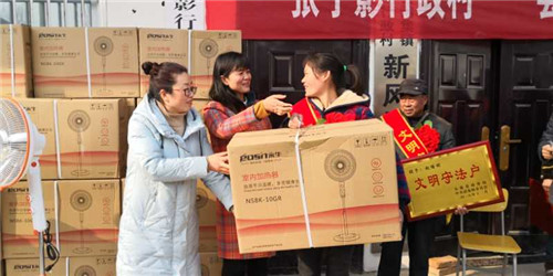 太康縣商務局為38戶受表彰的先進家庭頒發了獎牌和價值300元的電熱扇。