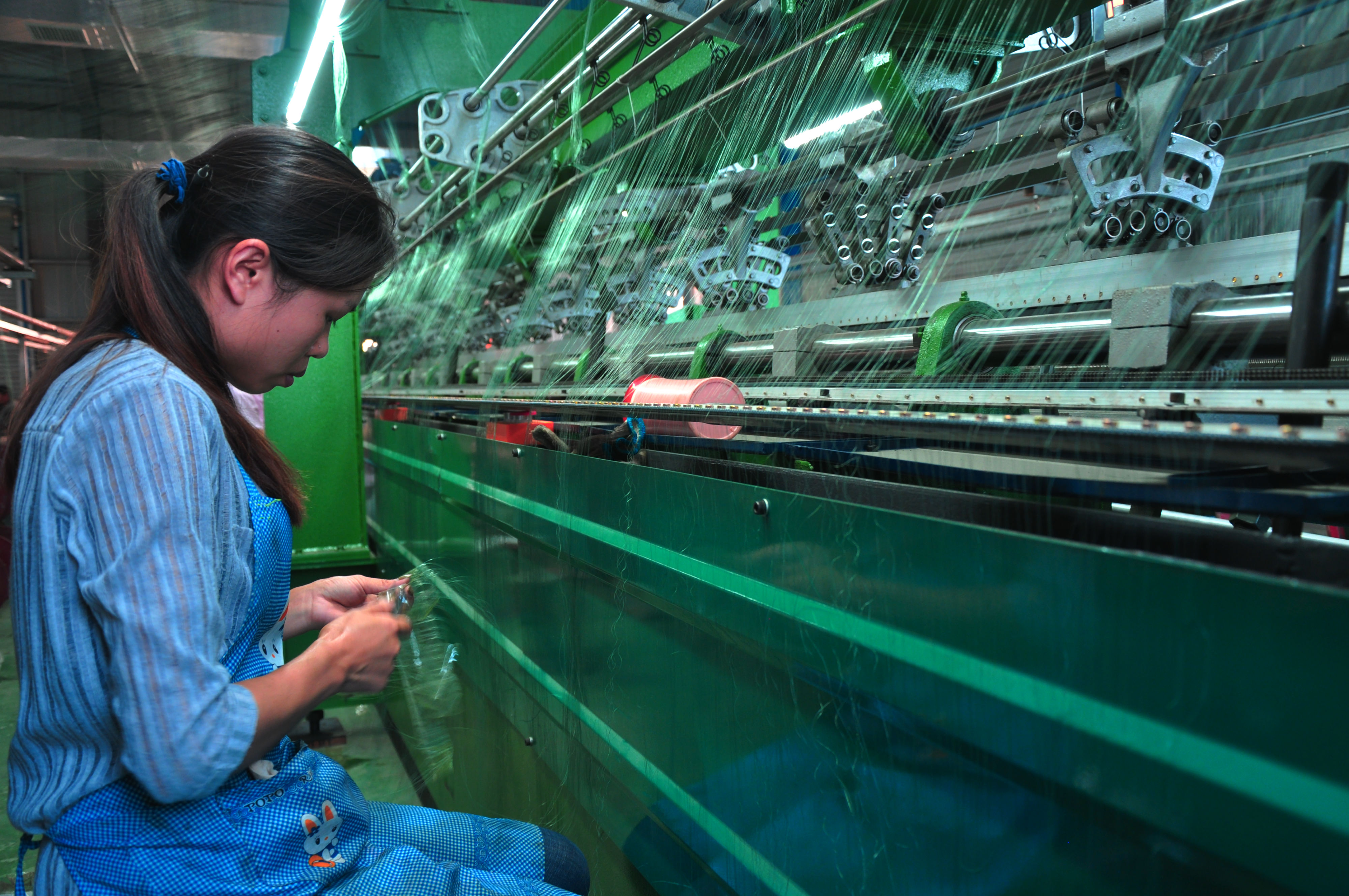 8月3日,一名女工正在魏集鎮張莊村“巧媳婦”企業——三聯漁網有限公司網布生產車間裁剪網線。據了解,該鎮大力發展漁網編織、服裝加工、燈籠制造等產業,把工廠辦到村頭,讓留守婦女和貧困群眾在家門口就能打工掙錢。