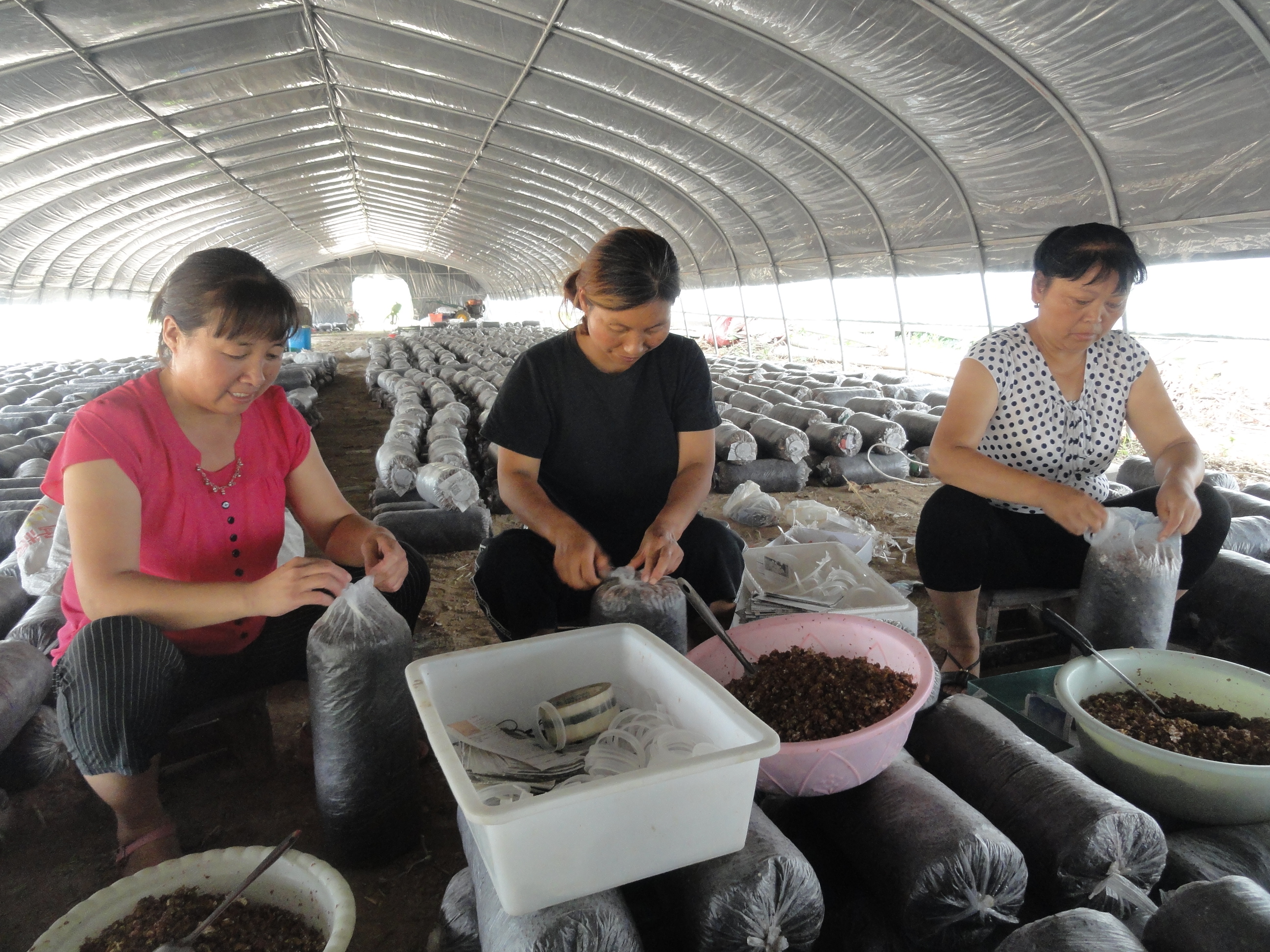 黃寨鎮的楊秀麗在鎮黨委、鎮政府的支持下,先后投資120多萬元,在楊營村創建了榮達食用菌合作社,實行統一育種、統一管理、統一技術,直接帶動20多戶群眾實現增收。圖為昨日,楊秀麗和合作社人員一起裝封菌種。