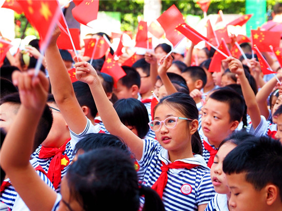 “我和我的祖國(guó),一刻也不能分割……”9月6日上午,長(zhǎng)沙市未成年人“傳承紅色基因 向國(guó)旗敬禮”主題教育實(shí)踐活動(dòng)啟動(dòng)儀式在芙蓉區(qū)大同小學(xué)正式舉行,伴隨著《我和我的祖國(guó)》的美妙旋律,上千名青少年齊聲高歌,鮮艷的五星紅旗一起舞動(dòng),匯成一片紅色的海洋。