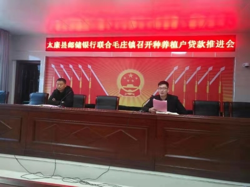 為進一步鞏固脫貧攻堅成果,培育農村能人和種養大戶的帶貧能力,服務三農,助推鄉村振興,11月21日上午,太康縣毛莊鎮聯合太康縣郵儲銀行在政府會議室召開了種植養殖戶貸款工作會。會議由鎮主抓農業的人大主席郭方主持,各村支部書記和種養大戶參加了會議。