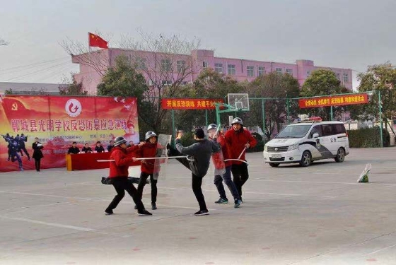 為切實做好“平安校園”建設工作,進一步增強全縣師生對突發暴恐事件的防范意識,提升在面對暴恐事件時自護自救及有效逃生避險能力,最大限度減少因突發暴恐事件對師生造成的傷害,提高學校安全保衛應急處置和管理水平,12月20日上午,鄲城縣反恐辦組織相關單位在光明中學開展防暴恐知識培訓和演練。