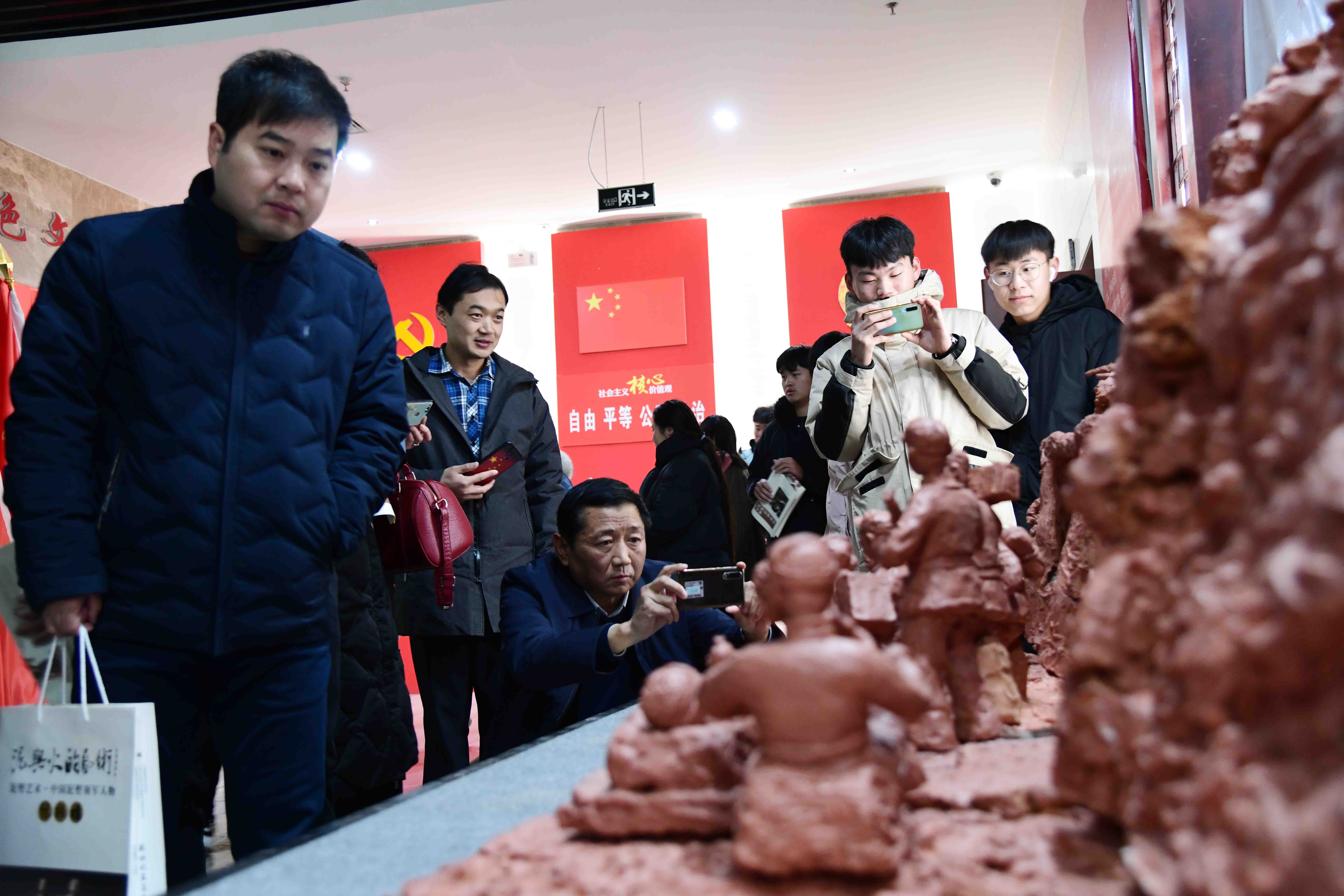 12月26日上午,由市委宣傳部、市文聯(lián)主辦,鄲城縣委宣傳部、鄲城縣文聯(lián)、周口民間文藝家協(xié)會(huì)承辦,市博物館、市非物質(zhì)文化遺產(chǎn)保護(hù)協(xié)會(huì)協(xié)辦的2019年度周口市文藝精品創(chuàng)作工程重點(diǎn)項(xiàng)目“張振福‘烽火年代’鈞瓷泥塑藝術(shù)展”在周口市文化藝術(shù)中心開(kāi)展,共展出我市工藝美術(shù)大師、雕塑家張振福150多幅鈞瓷泥塑藝術(shù)品,這些很接地氣的作品藝術(shù)性地再現(xiàn)了中原農(nóng)耕時(shí)代生活圖景,反映了底層勞動(dòng)人民淳樸、善良、樂(lè)觀的精神世界。