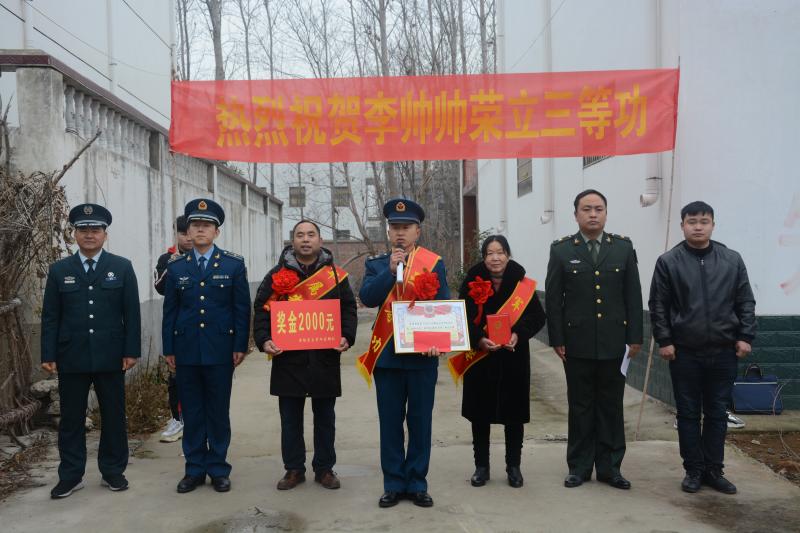 一人參軍,全家光榮;一人立功,全家榮耀。2020年1月2日,沈丘縣洪山鎮廟山李村聽說黃繼光生前部隊要來送喜報,榮立三等功的李帥帥一家特地選擇在村口迎接這份榮譽。接過大紅喜報,李帥帥的母親喜極而泣:活了幾十年了,送兒子當兵也有12余年,今天是我對“軍屬光榮”四個字感觸最深的一次,也是最光榮的一天,沾了兒子的光了……