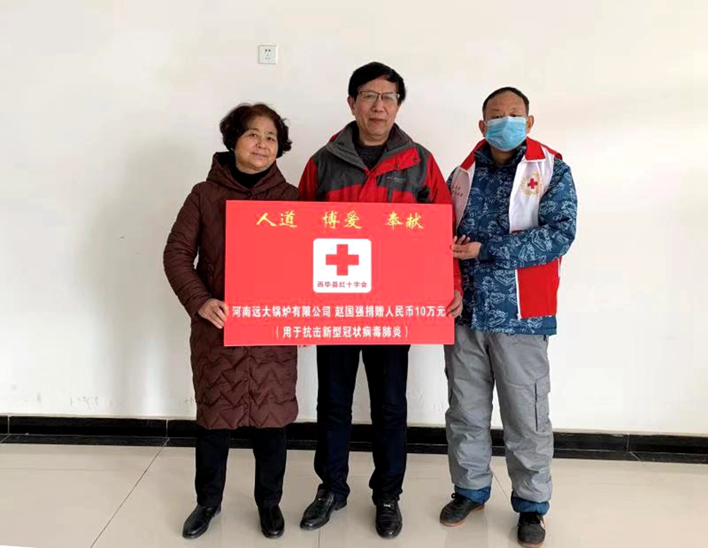 手術后在鄭州休養的河南遠大鍋爐黨支部書記趙國強,在看到廣大醫護人員、共產黨員紛紛申請到抗疫一線時,他躺不下了,不顧身體病痛,于1月31日和家屬專程趕回西華,向西華縣紅十字會捐款10萬元,用于抗擊新型冠狀病毒感染的肺炎疫情防控工作。