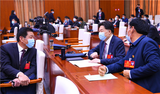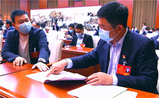 5月12日,參加市四屆人大五次會議的人大代表就大會上所作的政府工作報告等內容進行討論交流。