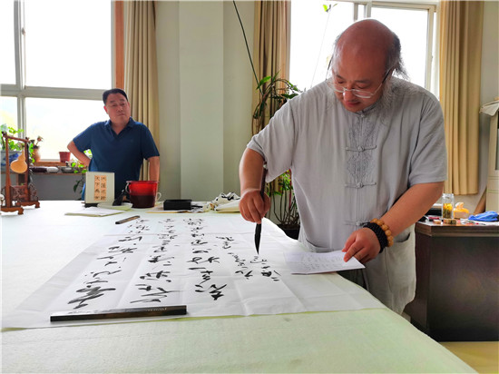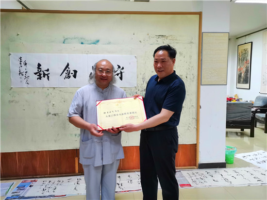 近日,當代指書大家李云飛受邀到周口報業集團書畫院進行書法交流。交流現場,李云飛揮毫潑墨,創作了多幅書法作品。活動結束后,周口報業集團王社長為李云飛頒發了聘書,聘請李云飛為周口報業集團書畫院名譽院長。