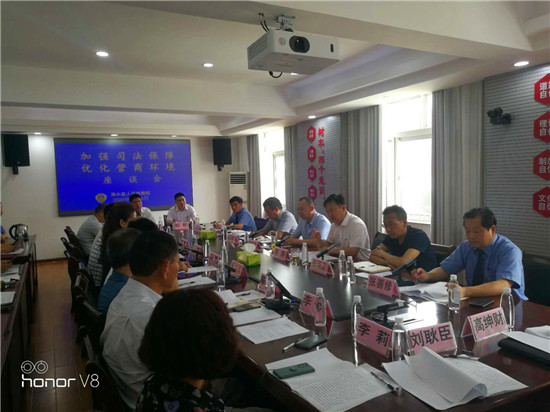 7月28日上午,商水縣加強司法保障、優化營商環境座談會在縣檢察院會議室舉行。縣政協副主席、工商聯主席彭發光,縣檢察院黨組書記、檢察長顧濤,縣公安局政委程寶峰,縣法院副院長張華衛、縣工商聯副主席兼秘書長王志成等領導及全縣近20家重點民營企業負責人參加了座談會。