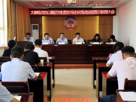 8月11日,太康縣政協召開深化以案促改制度化常態化推進會暨警示教育會。縣政協主席、黨組書記王建林,縣政協副主席丁明禮、劉玲、王永剛、劉鳳芹及縣政協機關全體黨員干部參加了會議。縣紀委監委指導組親臨指導。