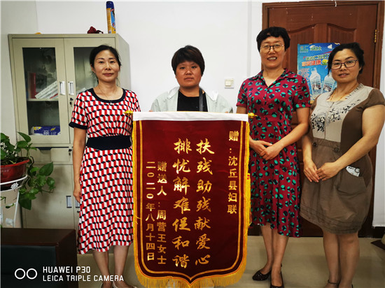 “現在國家政策好,感謝黨和政府,感謝領導對我們的關心,讓我們這些貧困婦女有了依靠!”當日發放現場,家住周營鎮謝營村的王女士帶著錦旗,來到縣婦聯會,對“娘家人”的社會關愛救助之情表示感謝。