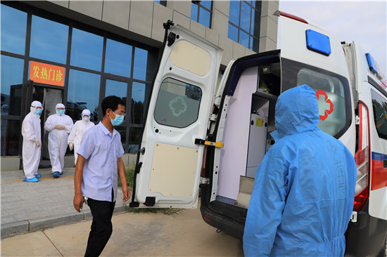 演練中,一名中年男子駕車到港區(qū)醫(yī)院就診,患者自述一周來在外地居住,無發(fā)熱癥狀,近一天來有氣促,活動(dòng)后胸悶、氣促加重,偶有咳嗽。經(jīng)急診科醫(yī)生多次詳細(xì)詢問流行病學(xué)史,發(fā)現(xiàn)患者有隱瞞病史嫌疑(一周前同室居住工友,23日已確診為新冠患者),確定該病員為可疑新冠病毒肺炎患者。立即電話通知科主任及醫(yī)療救治專家組成員會(huì)診,根據(jù)患者主訴和臨床表現(xiàn),專家組分析高度懷疑病人為可疑感染新冠病毒病員。立即轉(zhuǎn)運(yùn)至隔離留觀室,并通知傳染病管理小組將疫情上報(bào)至市疾病預(yù)防控制中心,并協(xié)助對該病員進(jìn)行流行病學(xué)調(diào)查、轉(zhuǎn)運(yùn)及指導(dǎo)消毒、滅菌等工作。經(jīng)市級專家會(huì)診后,符合疑似病例,按照區(qū)防控指揮部規(guī)定,采用負(fù)壓轉(zhuǎn)運(yùn)車轉(zhuǎn)運(yùn)定點(diǎn)醫(yī)院治療。