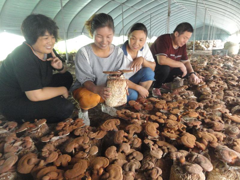9月15日,商水縣黃寨鎮(zhèn)楊營村“蘑菇王”楊秀麗(左二)在蘑菇扶貧產(chǎn)業(yè)園里向食用菌種植戶傳授靈芝管理技術(shù)。近年來,黃寨鎮(zhèn)通過政策扶持、項目促動、培訓(xùn)指導(dǎo)等舉措,采用“合作社+基地+貧困戶”等模式,集種植、加工、銷售為一體,加快推進(jìn)食用菌全產(chǎn)業(yè)鏈開發(fā),帶動了周邊300多人種植食用菌脫貧致富。喬連軍 攝