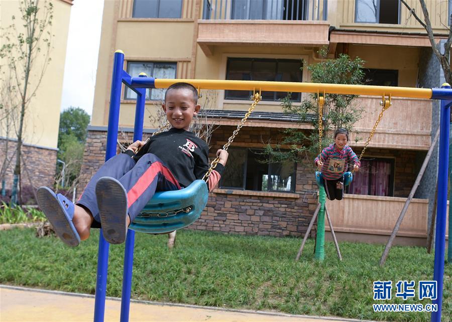 孩子們在南坪社區內的健身場玩耍(8月11日攝)。 新華社記者 李賀 攝