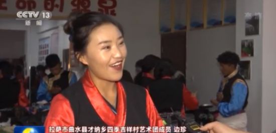 拉薩市曲水縣才納鄉四季吉祥村藝術團成員 邊珍:練到了一個舞蹈,會了一個動作,那多舒服。我們藏族大部分都是能歌能唱能跳的,是吧。