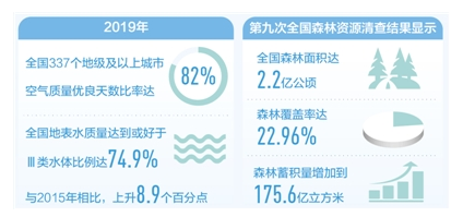 5年砥礪前行,污染防治攻堅戰全面推進。截至2019年底,“十三五”規劃綱要確定的生態環境領域9項約束性指標,有8項已提前完成。天藍水凈地綠的美麗中國正向我們走來。