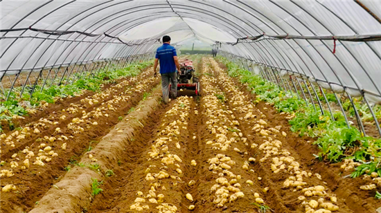 試點村宋崗、王村率先嘗試鋼架拱棚種植,春季在棚內種植土豆,夏季養殖豆蟲,秋季種植糯玉米、水果玉米、小尖椒、有機花菜等,“三季連作”,立體化種植。當年,這兩個村的群眾收成喜人,收入翻番。
