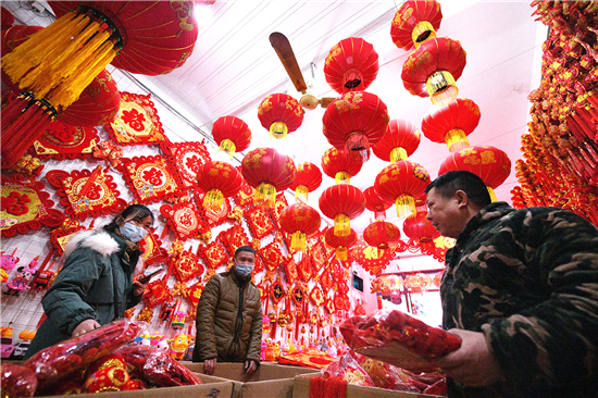 今年,年貨市場的燈籠、春聯品種豐富,印刷工藝日益提升,春聯品種多而全,燈籠市場更是琳瑯滿目,制作非常講究。③2