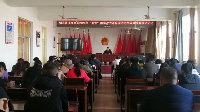 在春節、元宵節即將來臨之際,川匯區城南街道辦事處開展2021年“雙節”前廉政黨課暨廉潔過節集體談話活動,要求黨員干部增強廉潔自律意識、筑牢思想防線,確保過一個風清氣正的“雙節”。