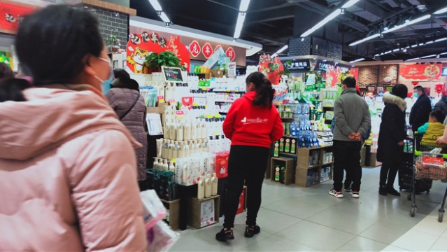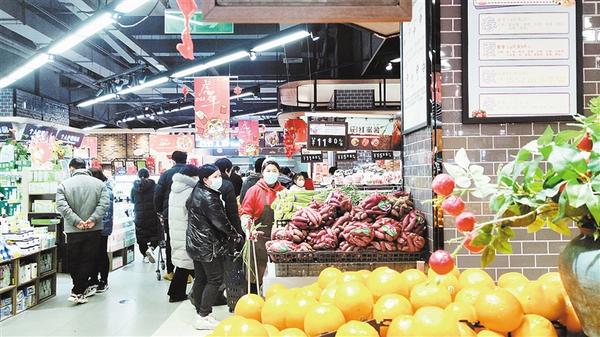 春節日益臨近,我市中心城區的各大超市充滿了濃濃的年味兒。1月26日,記者走進一家超市看到,各類商品擺滿了貨架,糧油、糖品、干貨、生鮮、熟食、水果等品種豐富,一應俱全,過年的氛圍十分濃厚。
