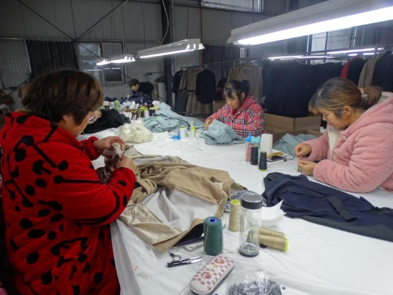 2月5日,暖陽燦爛,年味漸濃。坐落于沈丘縣付井鎮的佳衣服飾“巧媳婦”工程示范基地,訂單服飾加工生產車間里,整齊擺放的縫紉機、鎖邊機發出“滴嗒嗒”的響聲,工人們在流水生產線上有條不紊地裁剪、縫紉,不斷有新的布料被做成了嶄新衣物,并及時跟進質檢、包裝起來……一派繁忙景象,工人們正在趕制年前的最后一批訂單。