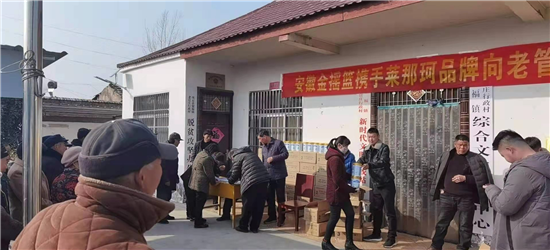“這是在安徽金搖藍公司工作的老官莊村人王北領、王建立攜手萊那珂奶粉企業慰問鄉親們吶!”武金英老人一臉幸福。據悉,這次慰問的對象是老官莊貧困戶、60歲以上老人及困難群眾,慰問捐贈的禮品為奶粉240桶,價值十萬余元。同時,老官莊新當選地村黨支部書記王杰華也出資5000元,為村里的60歲以上老人及困難群眾購買大米120袋,用行動為老官莊老人送去節日的祝福。